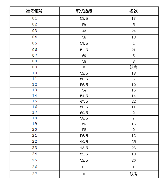根據(jù)《大龍窩索道公司技術員招聘公告》規(guī)定,2019年索道技術員招聘筆試已經(jīng)結束,經(jīng)審查同意,現(xiàn)將考生筆試成績予以公布。