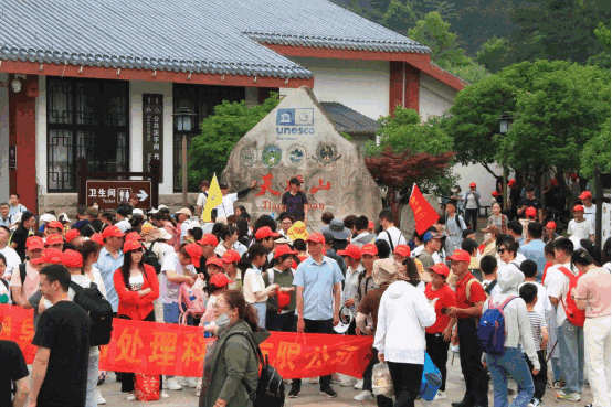 “中國(guó)旅游日”當(dāng)天,天柱山風(fēng)景區(qū)舉辦了“文明旅游、詩畫天柱、幸福中國(guó)”—全國(guó)旅游直通車萬人共攀天柱峰活動(dòng),迎來了來自省內(nèi)外直通車共計(jì)百余輛。